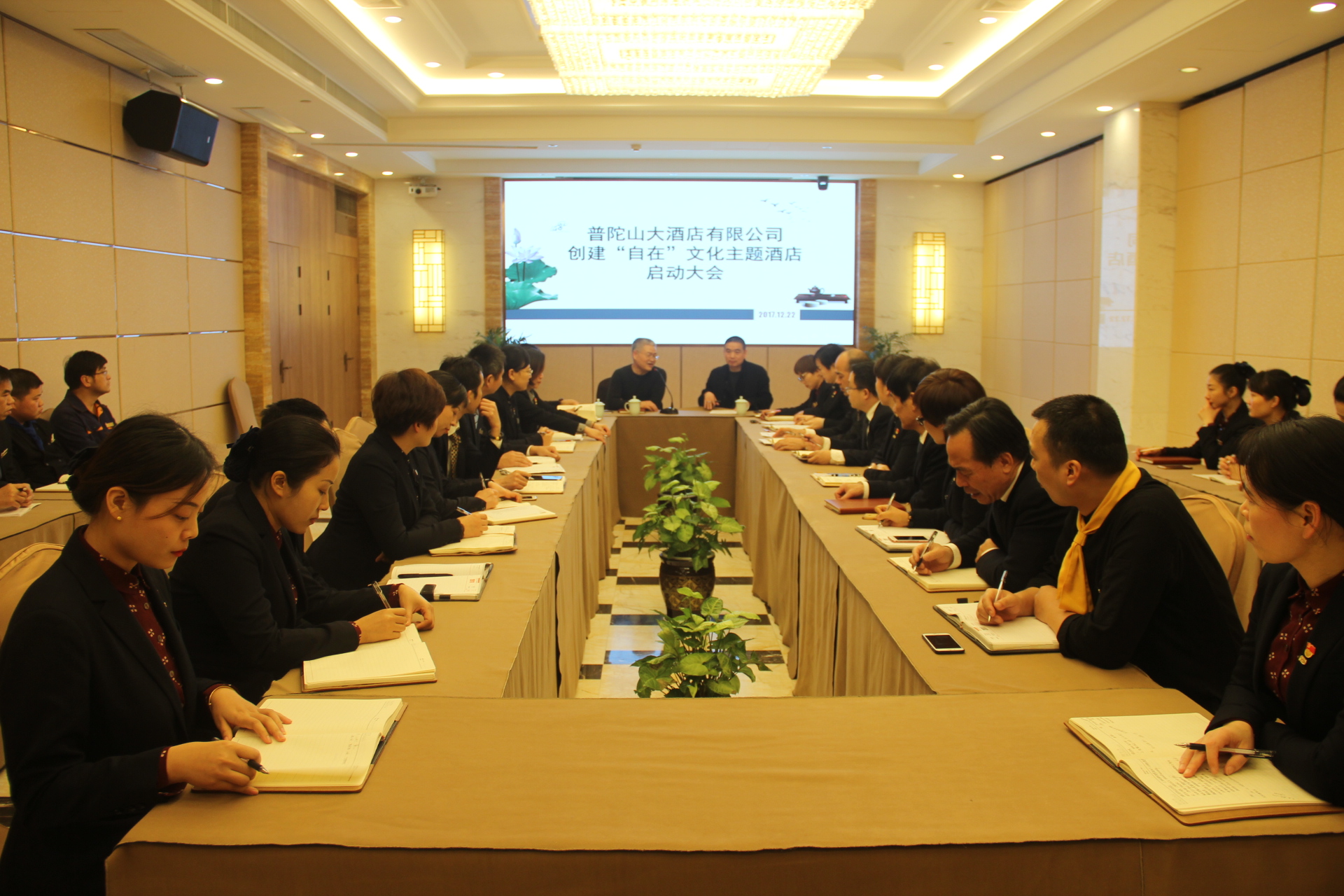 (本报讯)2017年12月22日下午,酒店召开创建“自在”文化主题酒店启动大会,市旅委专家蒲涛老师、酒店总经理朱小天及各级管理人员参加了启动大会。